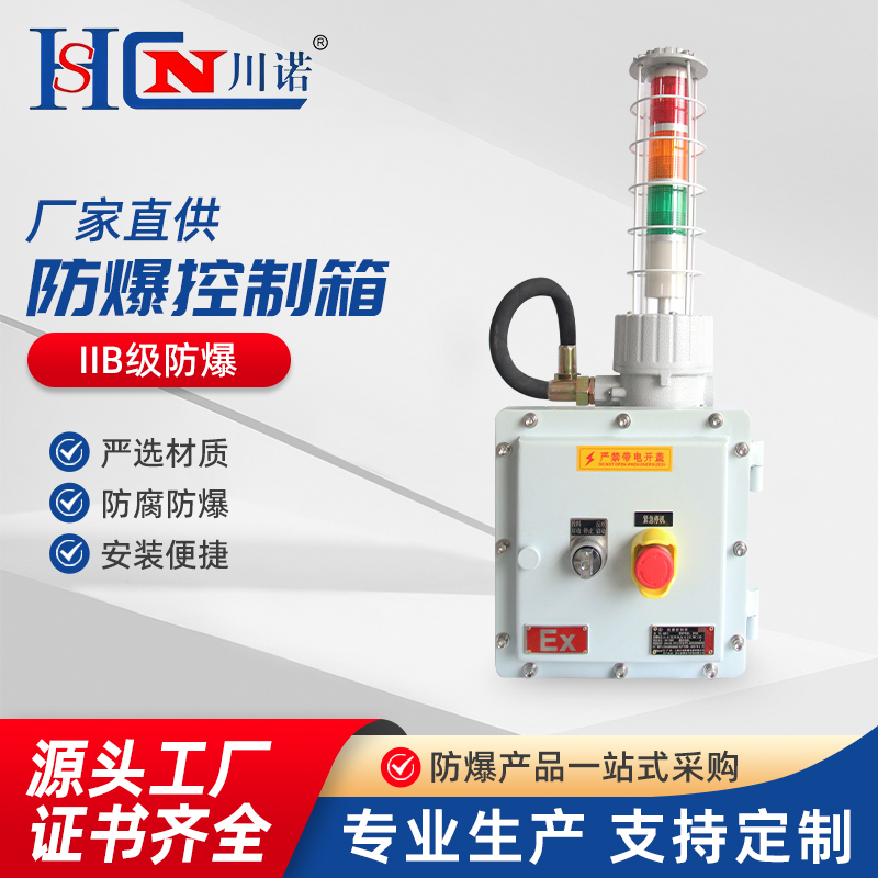 本產品是按照GB3836.1《爆炸性氣體環境用電氣設備“通用要求”》、GB3836.2《爆炸性氣體環境用電氣設備“隔爆型電氣設備”》、GB3836.3《爆炸性氣體環境用電氣設備“增安型電氣設備”》設計制造,經國家指定檢驗機關檢驗合格,并頒發合格證。本產品外殼是由鋼板焊接或壓鑄鋁合金(工程塑料)外殼拼裝而成,表面噴塑,外型美觀。壓鑄鋁合金外殼為增安型外殼,內裝隔爆型元件(按鈕、開關、信號燈等)組成。控制箱元件布置千變萬化,具體元件選擇排列,根據用戶提供的原理圖及要求確定,并可按用戶的要求重新設計制造。