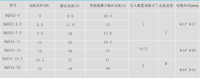 BQX52電動機變頻調速箱可通過改彎其輸出頻率來調節普通三相異步電動機的轉速,以達到生產工藝的要求或實現節電的目的,節電率可達30%~60%,可作為電動機軟起動控制器,也可通過傳感器,變送器等控制電路組成閉環調整系統。安裝操作簡單,起動平衡無沖擊電流(軟起動),電源容量大大降低,功經因素恒定,同時具備故障顯示等各種功能、